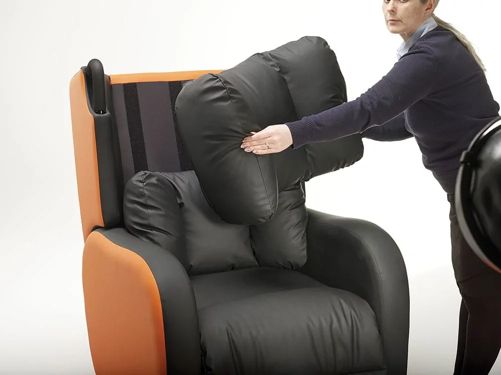There is a choice of six interchangeable pressure management back cushions that enable the chair to be adapted to a single user’s changing needs or to adapt the chair to another user. This ensures greater longevity of its usage.