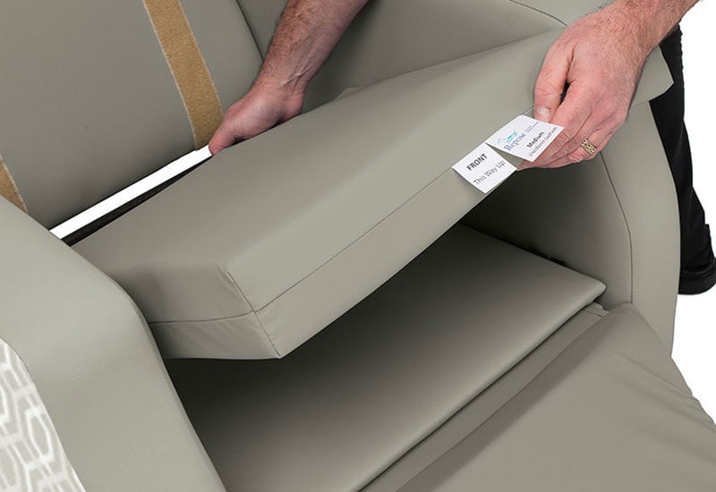 Cushions and covers are removable for cleaning. With all these seat cushions we recommend a fabric with four way stretch properties to aid reduction of shear and friction. If you would like to find out about what seat cushions are available on other healthcare chairs from the Repose range please see the comparison chart below. |