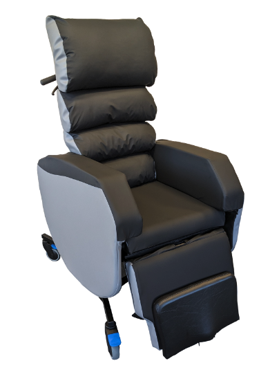 Easy-to-use Tilt-in-Space and Back Angle Recline functionalities – allows carers to alter the occupant’s position easily to re-distribute pressure and combat fatigue without compromising their postural support. Tilt-in-Space (TiS) redistributes body weight whilst maintaining hip and knee angle.