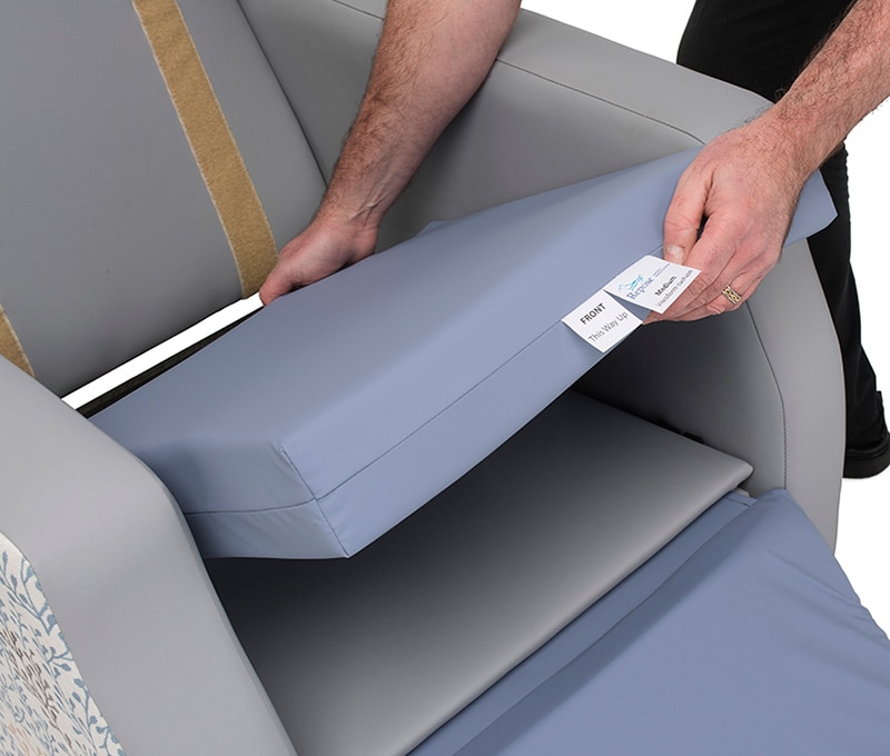 Cushions and covers are removable for cleaning and replacement. With all these seat cushions we recommend a fabric with four way stretch properties to aid reduction of shear and friction. If you would like to find out about what seat cushions are available on other healthcare chairs from the Repose range please see the comparison chart below. |