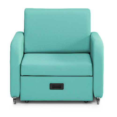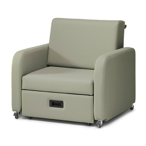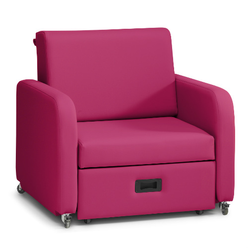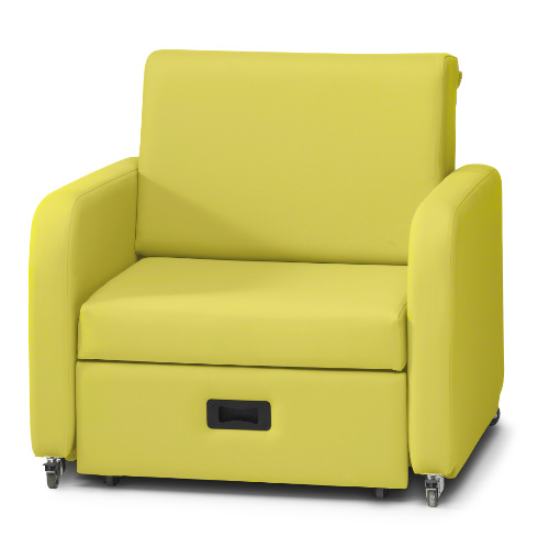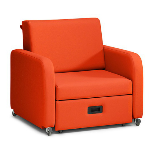 Design FeaturesMaking the most of available space, this compact chair allows rooms to become multi-functional; providing comfortable seating by day and additional bed spaces for visitors whenever they are needed. Modern design and colour choices that will complement any environment. Three highly versatile positions with a simple two step movement to quickly transform the chair into a lounge chair and into a full-length flat bed. Smooth flow pull and push action. Fully washable, bleach cleanable, anti-MRSA vinyl upholstery. Built in lockable castors for ease of movement for cleaning purposes. |